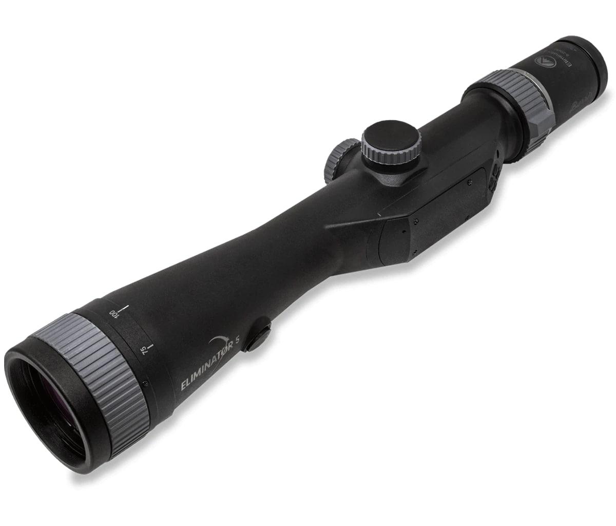 The Burris Eliminator 5 is the most innovative and effective hunting riflescope in the world. With the push of a button the Eliminator 5 ranges and displays the distance to the target instantly calculates and displays the exact aiming point and wind data all inside the scope for complete situational awareness. No need for wasting time with separate rangefinders apps or smartphones. The Eliminator significantly increases your effectiveness as a hunter and eliminates the guesswork when seconds count.
